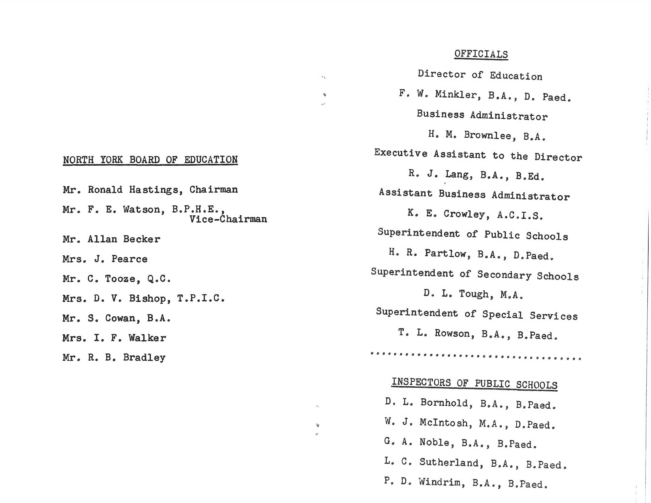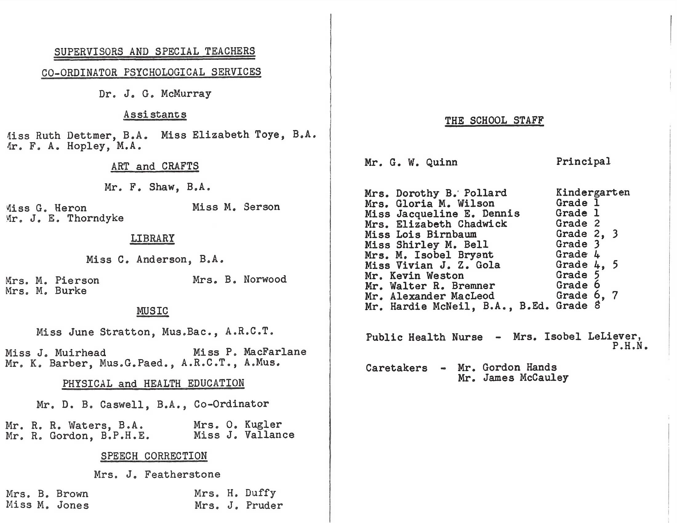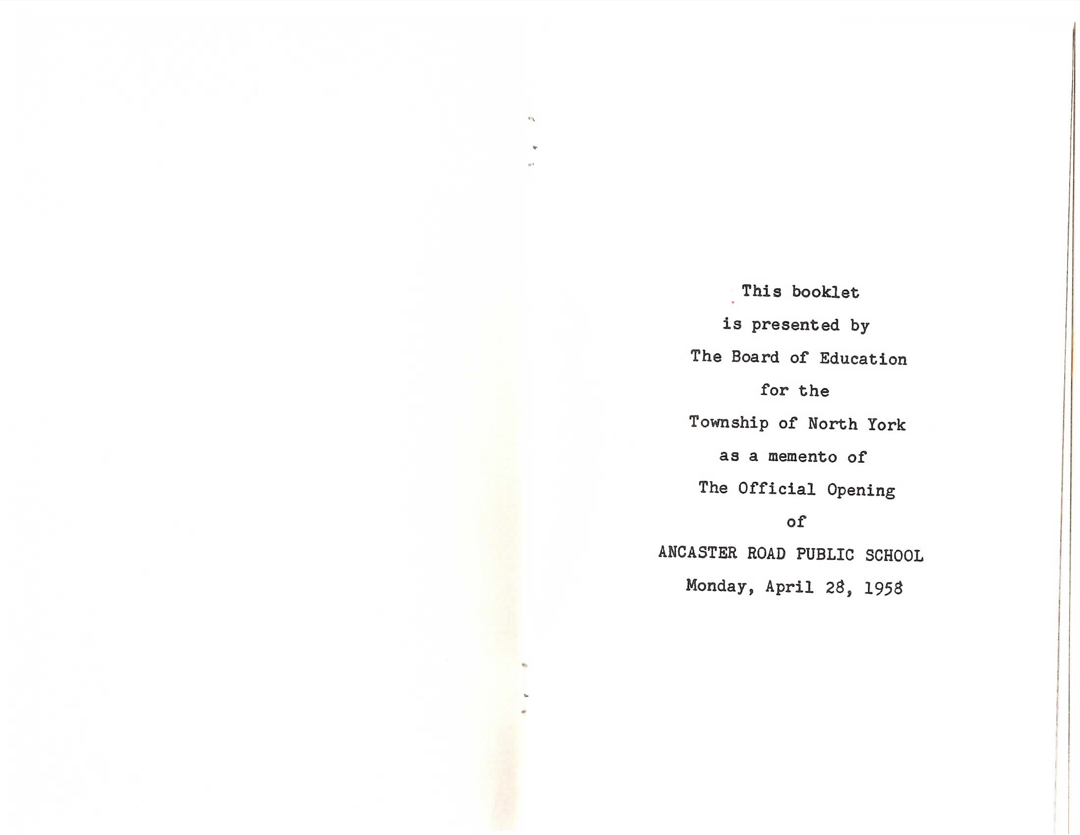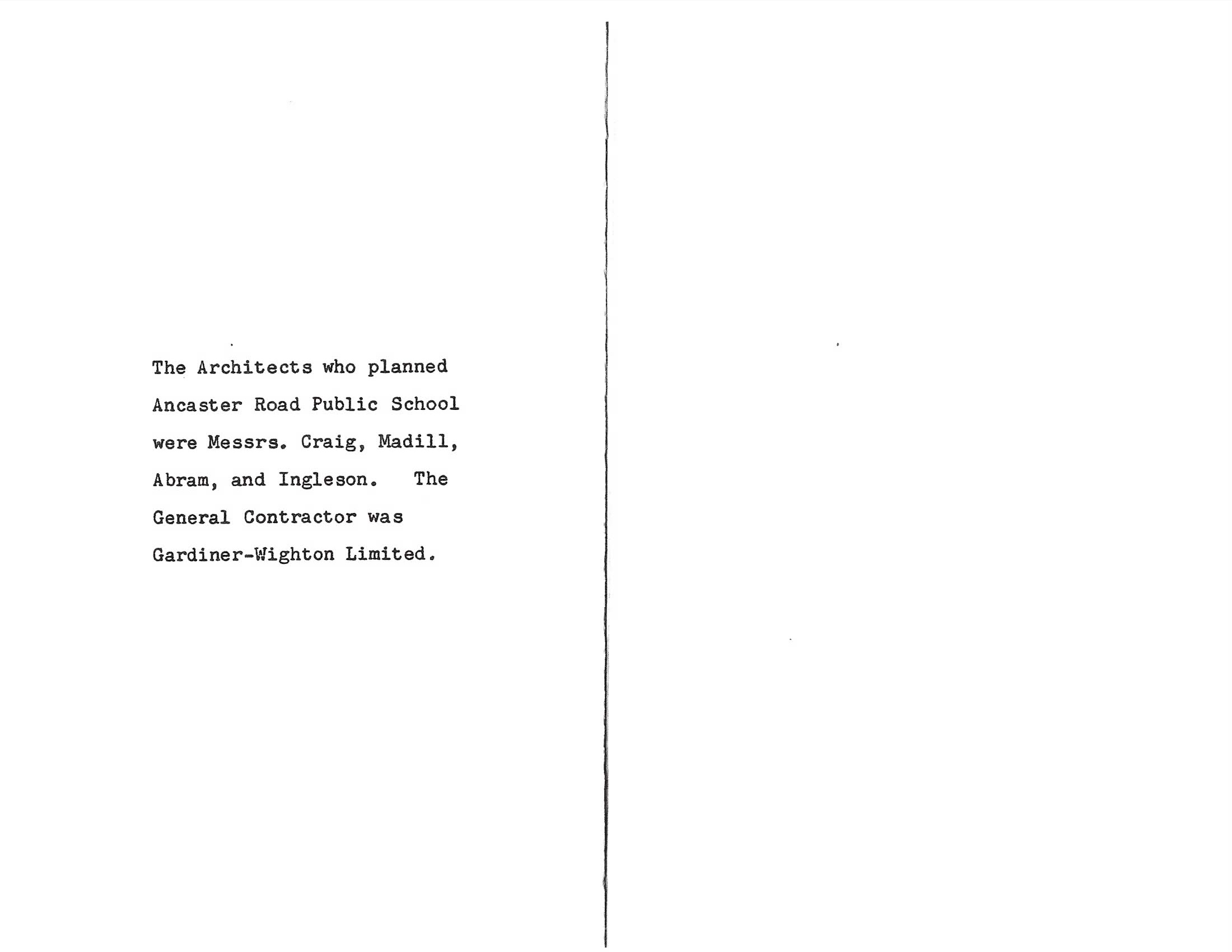 The source of this very interesting document is Carol (Macdonald) Hogan who grew up in a house on Spalding across from the school. The MacDonald family moved into their home in 1955. Her mother gave this booklet to Carol. She says she still has all her report cards too. Ruth Upton says that between 1952 and 1958 Ancaster was mostly a collection of portables tied together. Throughout the 1960s, the school had an air raid siren on top. During the Cuban Missile Crisis in 1962 the teachers would prepare us for a nuclear attack by having us crouch under our desks or sit on the floor in the gym.